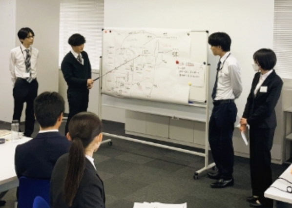 学生との違い(考え方や姿勢、行動など)を再認識した上で、会社組織形態、各セクションの業務内容の確認を行います。また、ビジネスマナーやワークショップ形式の体験型学習、当社製品の生産工場や配送センターの見学を実施し、最初にニッタンの大まかな全体図を掴んでもらいます。
